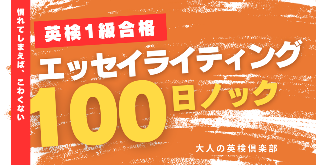 英検1級合格への道のりは決して平坦ではありませんが、毎日一歩ずつエッセイに向き合うことで、本番で揺るぎない自信を持ってペンを握れるようになるはずです。試験前日の自分に「やりきった」と胸を張れるよう、100日ノックを共に駆…